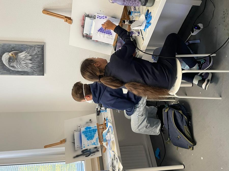 Alle Airbrush Fans 12-18 Jahre sind willkommen - Schritt für Schritt gehen wir von einfachen Übungen zu komplexeren Aufgaben über und schaffen einzigartige Designs auf Papier, Leinwand, T-Shirts oder Stofftaschen bis hin zu Projekten im Stadtraum.