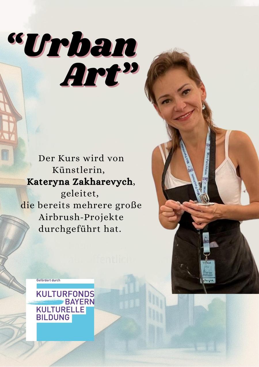 Airbrush Workshops Urban Art Block 2 (Nov.–Dez. 2025) | 6 Samstagstermine | 12 bis 18 J. | Forchheim der Zukunft – Wie sieht unsere Stadt in 50 Jahren aus? Ausführliche Informationen finden Sie auf unserer Website!