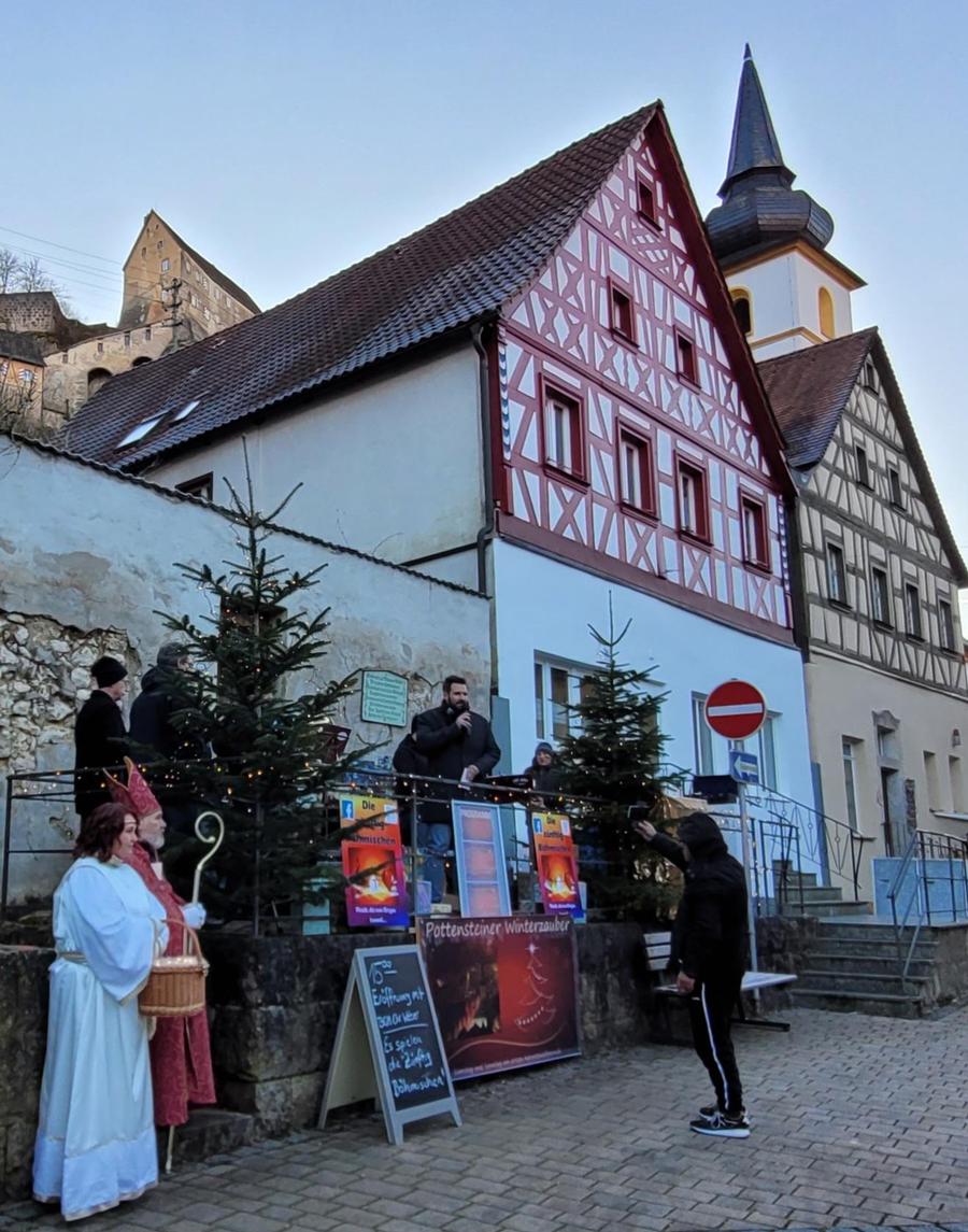 13.00-20.00 Uhr Weihnachtspäckchenverlosung im Pfarrheim Pottenstein (neben der Stadtpfarrkirche). Jedes Los gewinnt.14.00-15.00 Uhr Märchenwanderung für Kindergartenkinder mit Bernie Bauernschmitt „Wenn die Tiere Weihnachten feiern“, Weihnachtsbaum schmücken für die Waldtiere und kleine Stärkung. Anmeldung erforderlich: Tourismusbüro 09243/70842, 13.00-17.00 Uhr Rikschafahrten durch das Felsenstädtchen (bei geeigneter Witterung),14.00-15.00 Uhr Konzert mit Sax n Die am Marktplatz, 14.00-17.00 Uhr Kinderschminken am Stand vom Elternbeirat ASB Kiga und Rasselbande, 15.00-16.00 Uhr Nostalgischer Adventsspaziergang - eine Zeitreise durch unsere romantische Altstadt. Treffpunkt: Brunnen am Marktplatz mit Thomas Bernard, 13.00-18.00 Uhr Live-Schmiedevorführung, 15.00-20.00 Uhr Adventscafé im Café-Bistro vom Hotel Schwan mit hausgemachten Kuchen und Weihnachtsgebäck, 15.00-20.00 Uhr Urige Hüttenatmosphäre in Bruckmayers Winterhütte mit Feuerschalen außen zum Aufwärmen und heißen Getränken, 16.00-17.00 Uhr Offenes Singen für die ganze Familie in der evangelischen Johanniskirche Pottenstein (Forchheimer Straße 21, Ortsausgang Richtung Tüchersfeld) mit Dietmar Joseph, 16.00-17.00 Uhr Musik mit der Oberailsfelder Blasmusik am Marktplatz, 18.30-20.00 Uhr Musik mit der Trachtenkapelle Hohenmirsberg am Marktplatz
