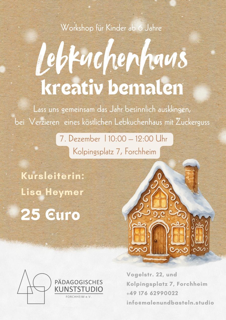 Komm vorbei und verziere mit uns ein liebevolles 3D-Lebkuchenhäuschen warm, kreativ und gemütlich.