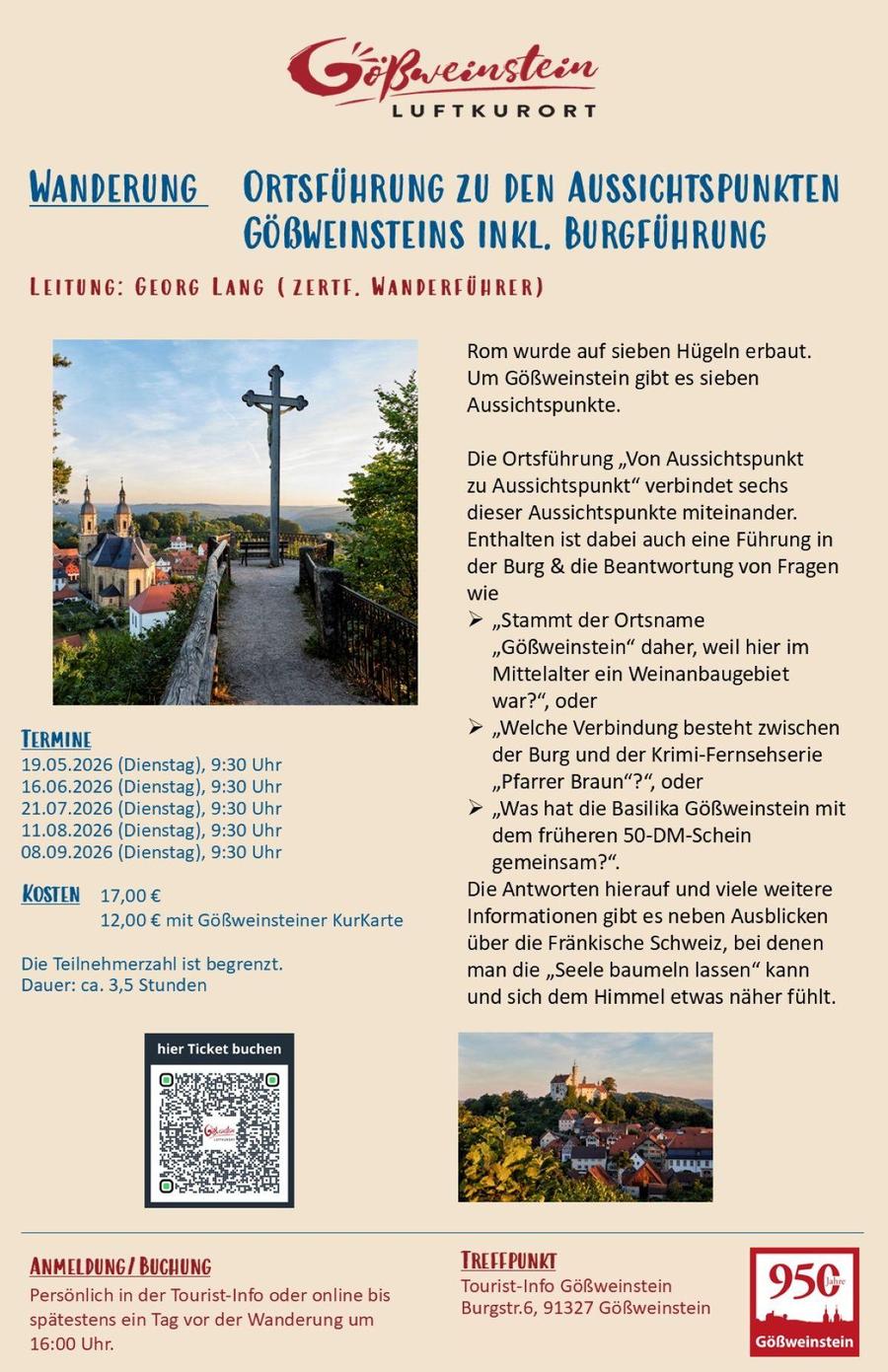 Ortsführung zu den Aussichtspunkten Gößweinsteins inkl. Burgführung