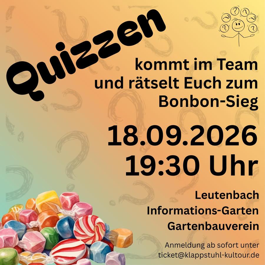 Wie nehme ich teil? Teams (Familien, Freunde, Kollegen, Vereinskameraden, Pärchen, …) können sich anmelden unter ticket@klappstuhl-kultour.de. Bitte verratet uns, wie viele Rätselfreunde sich in Eurem Team befinden.